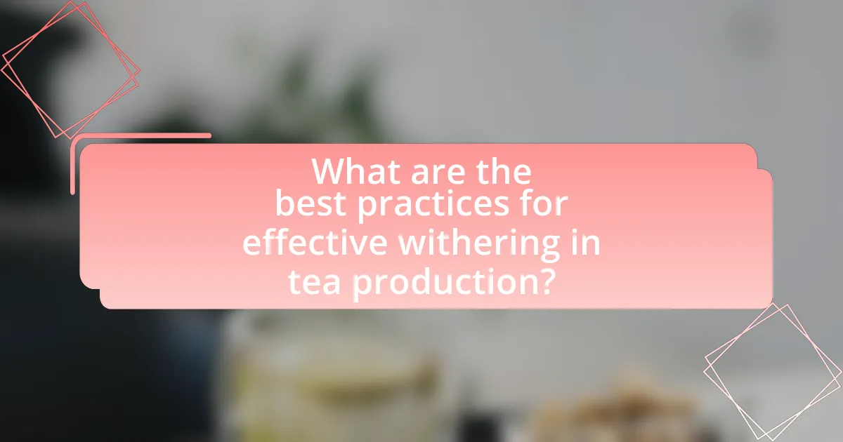 The best practices for effective withering in tea production include controlling temperature and humidity, ensuring proper airflow, and monitoring leaf moisture content. Maintaining a temperature range of 20-30°C and humidity levels around 60-70% facilitates optimal moisture loss from the leaves. Adequate airflow prevents mold growth and promotes even withering, which is crucial for flavor development. Additionally, regularly checking the moisture content of the leaves ensures they reach the desired level for subsequent processing, typically around 60-70% moisture reduction. These practices are supported by research indicating that precise environmental control during withering significantly enhances the quality of the final tea product.